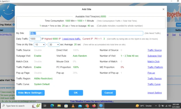 One common and important setting of Traffic Spirit software is to select visitors’ time spending on your site. Another thing is to start and stop traffic anytime and you can also add 10 websites instantly in traffic spirit software. The other important feature of traffic spirit software is subpage visitors which is useful for any blogger website where visitors redirect to multiple pages.